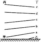 【小题2】根据等压面倾斜方向可判断出甲处受热较多,气流上升,乙处受热较少,气流下降,因此,气流运动方向为甲→丙→丁→乙→甲。