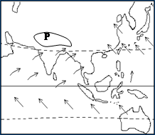 【小题1】风总是从高压吹向低压,根据风向从海洋吹向陆地,可知亚欧大陆此季节为低气压海洋为高气压;或者直接根据东亚东南季风、南亚西南季风风向直接判断为夏季。故C正确。