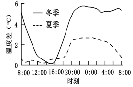 5、单选题 热岛强度为城区与郊区气温之差,其值高低反映了热岛强度的大小。从下图中可得到的正确信息是,某市热岛强度( )