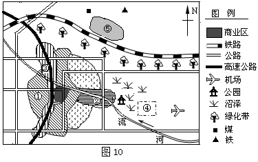 1、单选题 读某城市空间结构图(图10),回答1~2题。