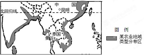 2、单选题 近三年来,我国云南省持续发生旱灾。2011年泰国发生了严重的洪涝灾害。下图为“部分地区主要农业地域类型分布示意图”。据此完成题。