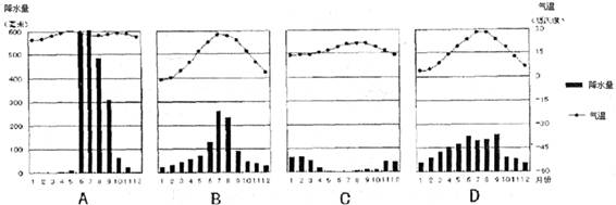 (3)a区域对应的是下图中的__________ (填字母)气候类型。