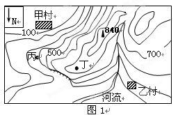 【小题1】图中甲乙丙丁四座村庄海拔较低的是 ( ) A.甲村 B.乙村 C.丙村 D.丁村