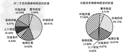 5、单选题 下图是上海市某区域住房价格各因素的影响权重示意图,读图完成以下1—2题。