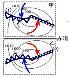 小题1:下列说法正确的是( ) A.甲天气系统东侧盛行偏北风,形成暖锋 B.乙天气系统中心气流旋转下沉,东侧为暖锋 C.①和②锋面分别向东南和西北方向移动 D.m地阴雨连绵,n地天气晴朗