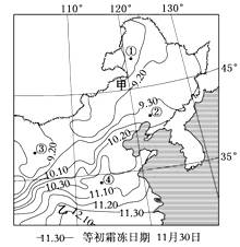 【小题1】图中①②③④四地中的,无霜冻期最短的是( )