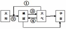 3、单选题  2009年12月7日至18日联合国全球气候变化大会在丹麦首都哥本哈根举行。读大气受热过程图,完成。