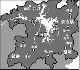 5、单选题 将建设鄱阳湖生态经济区上升为国家战略是新中国成立以来江西省第一个上升为国家战略的区域性发展规划。读 “鄱阳湖生态经济区规划分布示意图”, 回答各题。