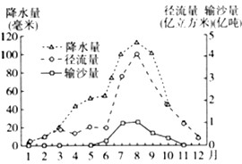 2、单选题 下图为“我国某河流中游水文观测站多年月平均降水量、径流量、输沙量变化图”。读图回答1~3题。