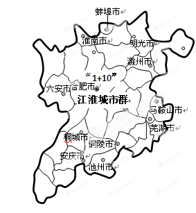 4、单选题 安徽省将在统筹协调好省会经济圈、皖南城市带、沿淮城市群发展的基础上,逐步构筑以合肥为中心的“1+10”江淮城市群。读“江淮城市群城市分布示意图(2008年)”,回答问题。