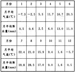 【小题1】根据表格数据,该地区1月气温低于0°C,终年降水少,故判断为温带大陆性气候。故D项符合。