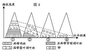 5、单选题 图8“垂直自然带与水平自然带理论上的对应关系示意图”,完成16-17小题1:下列地区代表性植被与甲类似的是 (? )A.西伯利亚地区 B.我国华北地区C.刚果盆地D.江南丘陵