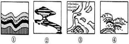 2、单选题 该图所示的地质构造或地貌景观中,主要由内力作用形成的是: ( ) |