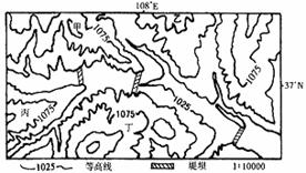 1、单选题 读右边“我国华北某地区等高线图”,回答34题。