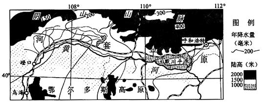 (1)指出河套平原的年降水量分布特征,并分析原因。