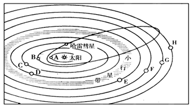 (2)八大行星绕日公转有同向性,即都是自______向______。请在图中地球的公转轨道上用箭头表示出来。(2分)