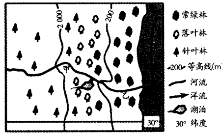 小题1:该区域沿海有常绿阔叶林,联系自然带分布规律可知应该在30°至赤道之间,从而推断当地在南半球。再根据洋流从低纬度流向高纬度得知,该洋流是南半球暖流。