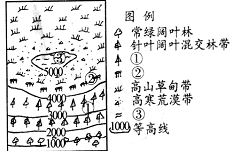 小题1:本题考查垂直自然带谱的分布。随着海拔高度的升高,热量水分条件都在降低。所以随着海拔高度的增高,有针阔混交林变为针叶林;山顶为积雪冰川带。所以本题选择A选项。