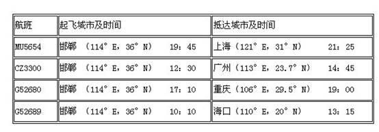 5、单选题 下表是邯郸机场某几日航班班次表,读表回答问题: