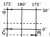 小题3:甲位于东十二区,丙位于西十二区,故区时相同,但日期差一天。