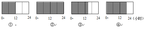 4、单选题 下图表示夏至日或冬至日四个不同纬度地区的昼夜长短情况(图中阴影部分表示黑夜),四地纬度从低到高的正确排序是?(?)