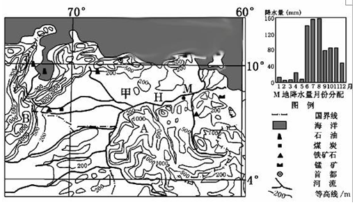 【小题2】乙洋流是本哥拉寒流,可使海洋污染程度降低,污染范围扩大,A错。受离岸东南风的影响,深层海水上涌,形成了世界著名的渔场,B正确。寒流对沿岸气有降温减湿的作用,C错。使沿岸地区形成了热带沙漠气候,D错。