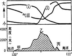 4、单选题 如图下部为某岛屿沿回归线的地形剖面图,上部是该区相关地理事物沿线变化图,回答问题: