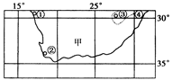 【小题1】下表统计数据与图中四城市气候特点吻合的是 A.①城市 B.②城市 C.③城市 D.④城市 |