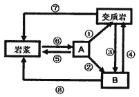 5、单选题 读“地壳物质循环简略示意图”,完成1—2题。