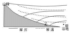 ③此时吹山风?④此时吹谷风。2.据实际调查,图中甲地的夜雨较多,其主要原因是该地区