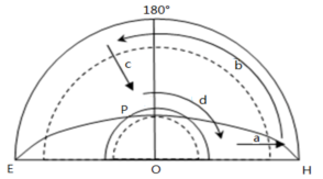 5、单选题 图中箭头表示洋流的分布位置及流向,O为极点,EPH为晨昏线, P点正在日出。读图回答下题。