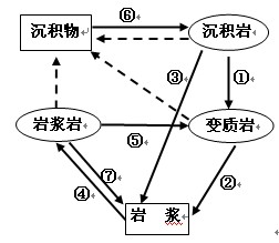 A.地壳下降—岩浆活动—风化、侵蚀 B.地壳上升—岩浆活动—风化、堆积 C.岩浆活动—地壳上升—风化、侵蚀 D.岩浆活动—地壳下降—风化、堆积 3、单选题 关于地表形态及成因的叙述,正确的是 4、单选题 某岩层中含有恐龙化石,那么此岩层的岩石可能是 [? ] A、页岩 B、玄武岩 C、花岗岩 D、板岩 5、单选题 岩石物质循环模型说明岩石通过不同的过程可以从一种形态转化成为另一种形态。 |