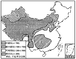2、图中①、②、③、④地区中,地质历史时期积累生物固定的太阳能最丰富的地区是