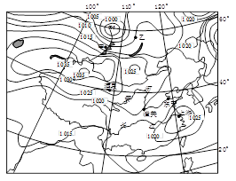 2、综合题 读12月某日14时海平面等压线(单位:百帕)图根据材料回答下列问题。(10分)