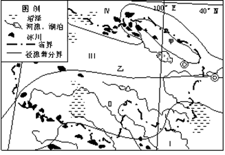 小题1:我国水资源分布状况是南多北少,东多西少;根据水资源供需现状分布,分成北方的缺水带(塔里木盆地、内蒙古高原西部)、少水带(青藏高原北部、东北平原西部)、过渡带(辽东半岛、华北平原);南方的多水带(长江中下游平原、横断山区)、丰水带(武夷山脉、海南岛)。结合图中经纬度位置,确定Ⅰ(南方)、Ⅲ(青藏高原北部)径流带分别为多水带、少水带。