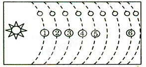【小题2】八大行星中远日行星包括天王星、海王星,结合前面分析,序号⑥是海王星,D对。水星、金星、地球、火星是类地行星,木星、土星是巨行星,A、B、C错。