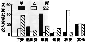 5、单选题 读甲、乙、丙三类工业企业的投入构成情况图,回答1—3题。