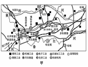 (1)图甲是著名的工业区________,区内丰富的矿产资源是_________。
