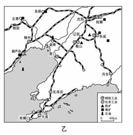 我国东北辽中南地区是发达的重工业基地。近几十年来,辽中南与东北其他老工业基地也出现了与鲁尔区同样的产业结构老化和环境污染等问题。为此,我国政府作出了“振兴东北”的战略决策(如图乙)。据此回答下列问题。