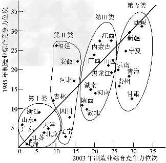 2、单选题 通常根据制造业综合竞争力位次的变化,可以把地区制造业综合竞争力动态类型划分为四种:高水平稳定型、较高水平波动型、较低水平波动型和低水平下降型。读下图,回答2题。
