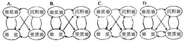 A.变质岩、岩浆岩和沉积岩 B.沉积岩、岩浆岩和变质岩 C.岩浆岩、变质岩和沉积岩 D.岩浆岩、沉积岩和变质岩 |