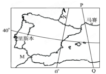 4、单选题  下图为世界局部地区示意图,图中PQ线为昏线,当PQ线与极圈相切时,一艘轮船从里斯本出发将一批货物运往马赛港。此时,里斯本与马赛相比(?)