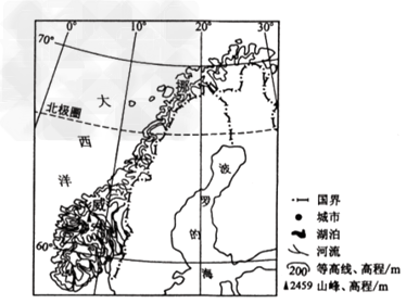 5、单选题 下图示意挪威位置和地形。挪威是世界上水能资源开发较充分的国家。该国大型水电站多为高水头(电站水库水位与发电机组所在位置高差大)电站。据此完成1~3题。