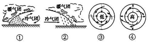 (3)图中①②两条锋线中,冷锋是____。锋线旁阴影为雨区,A雨区在锋_____(填“前”或“后”),B雨区在锋______(填“前”或“后”)。