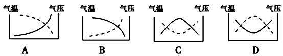 【小题4】下列四图中,能表示上题天气系统过境前后气压气温变化的是( )