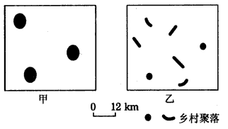 4、单选题 下图为“甲、乙两个地区的乡村聚落形态示意图”。读图回答1~2题。