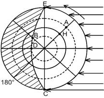 1、综合题 下图是一幅“以极地为中心的光照图”,读图完成下列问题。(10分)