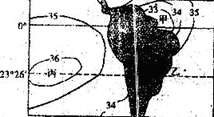 1、单选题 读世界某区域海水表层盐度(‰)分布图,回答: