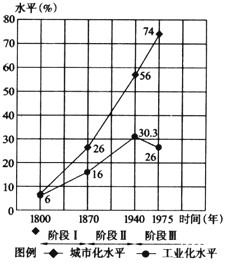 2、单选题 读某国工业化、城市化进程比较图,回答1~2题。