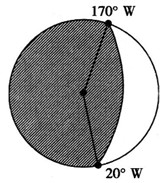 2、填表题 读图,阴影部分表示夜半球,回答下列问题。